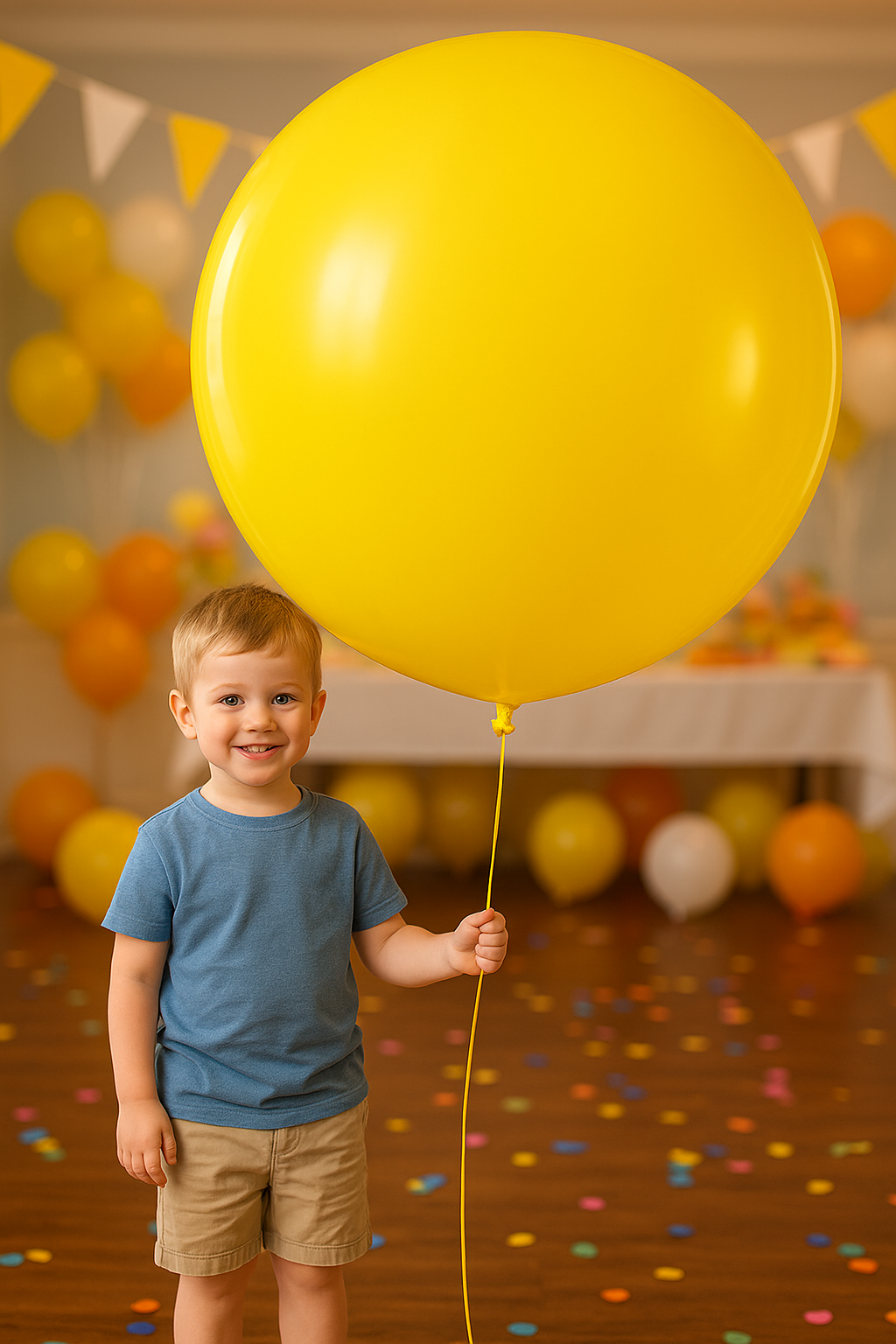Ballon géant rond jaune de 36 pouces (91 cm), livré par lot de 5. Idéal pour une décoration spectaculaire. Latex épais, gonflable à l'air ou à l'hélium.